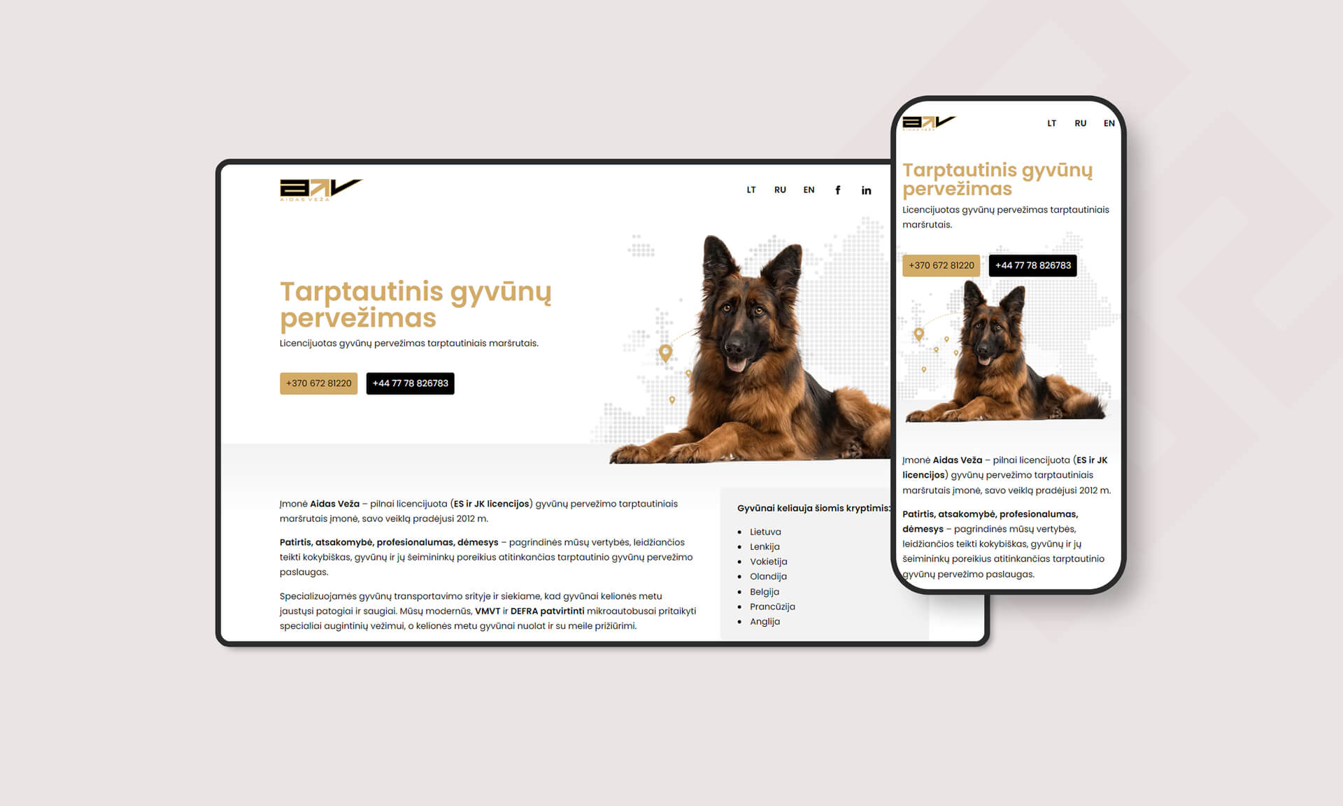 Sukurta vieno puslapio, unikalaus dizaino svetainė, skirta tarptautinei gyvūnų pervežimo paslaugai viešinti.